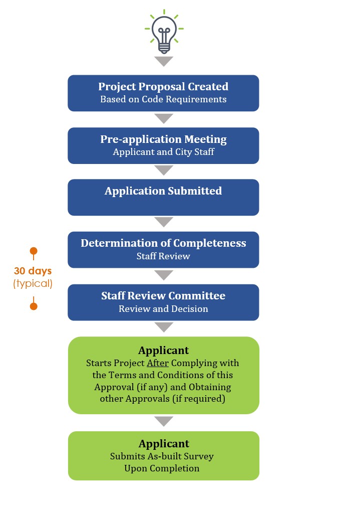 The Staff Review Committee (SRC) has the power to review and act on various applications. The Committee consists of the Planning and Development Director, Building Official, Fire Chief, City Engineer or designee, and any other City staff professional the City Manager deems necessary for professional review. The Planning and Development Director is chair of the Committee and is responsible for all final decisions of the Committee.