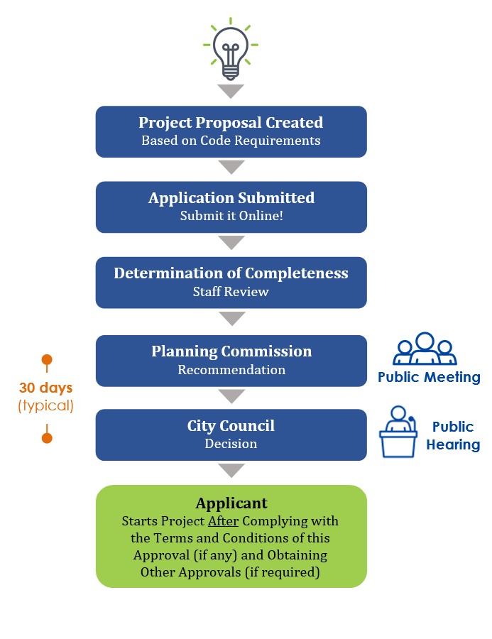 1. In order for an application to be heard on a given meeting date, the application (including forms, fees, plans, reports, etc.) must be submitted AND deemed complete by City staff on or before the corresponding submittal date. Because of that, you may want to submit your application before the submittal date. That way, we may be able to let you know if anything is missing and you'll have some time to perhaps get it done before the deadline.